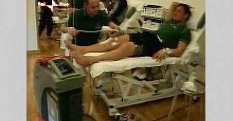 Max Biaggi si sottopone al trattamento Hilterapia® con l'apparecchiatura HIRO® 3.0 in dotazione alla CLINICA MOBILE del dott. Claudio Costa.